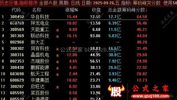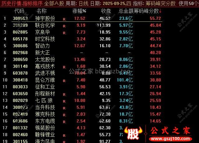 筹码峰突破指标因数据调用量大导致选股速度较慢,故改用排序功能显示分数,既可用于附图也能直接筛选。