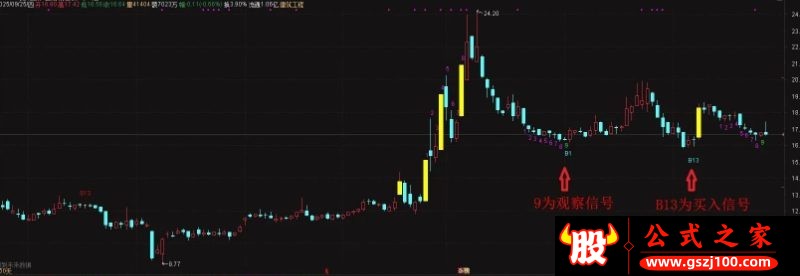 当满足一系列条件完成 13 天计数时,标记 B13(强烈买入信号)